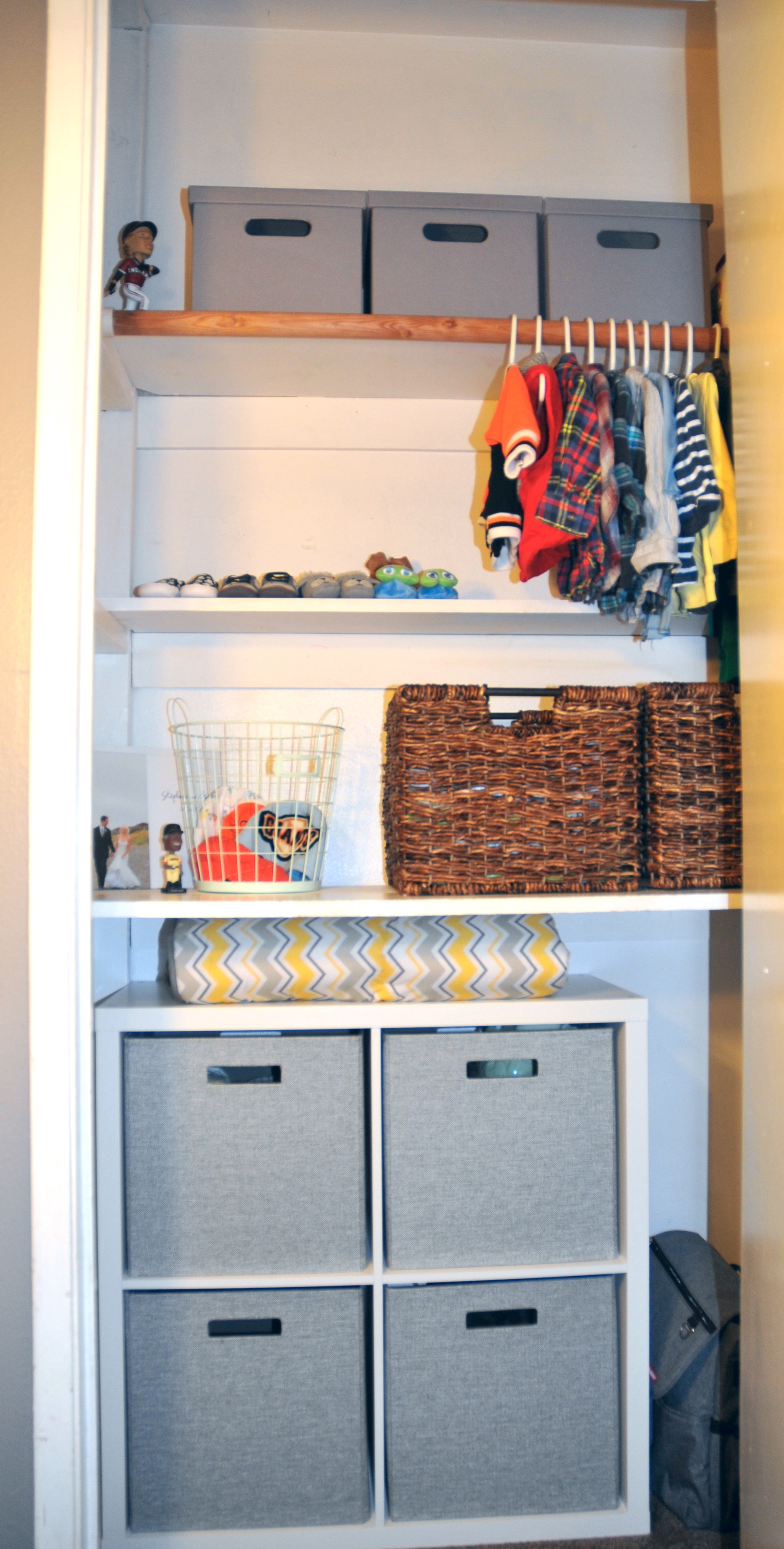 The first task was to tackle the closet which needed more use of the vertical space.